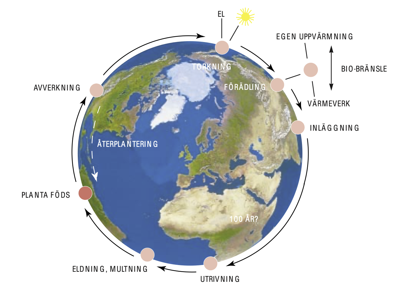 • Råvaran förädlas med målsättningen att utnyttjas till 100%. Spillmaterialet som blir över vid tillverkningen omvandlas bland annat till pellets och används för att värma upp fabriksanläggningen.